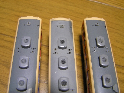 この車両全くライトがつかないんです。しかも原因不明。台車の集電パーツを換えても、車輪を換えてもダメでした。ライトユニットは生きてるんですが・・・。
