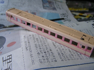 まずは、白塗装。GMカラー白3号。薄くかつ下地が見えないように・・・