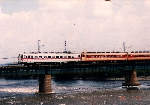 96年天理臨で使用されるキハ58-7301。右の鉄橋で撮影後、宇治駅まで行き左を撮影。